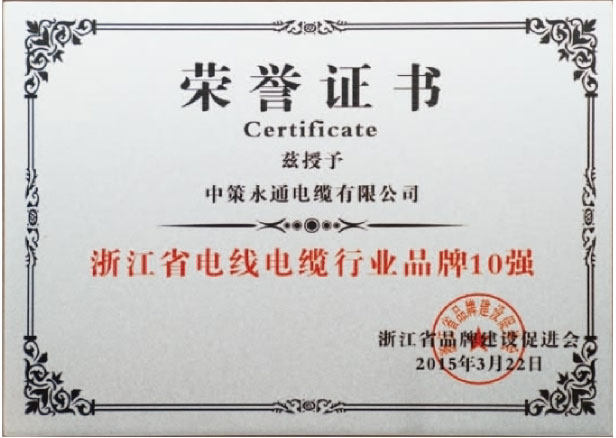 公司為浙江省電線電纜行業品牌10強,中國民營企業電線電纜100強品牌,并獲得國家專精特新小巨人企業、國家高新技術企業、省科技型中小企業、省專精特新中小企業、區政府質量獎、浙江制造“品”字標認證等多項榮譽。中策永通電纜有限公司生產設備精湛,技術力量雄厚,加工工藝先進,檢測工序齊全,質量體系完善,售后服務周到。以專業和品質為客戶提供優質的產品與服務,不斷在產品多元化、效益規模化、技術高新化、體制現代化中求突破,繼續擴大和保持在電線電纜領域的引領地位。